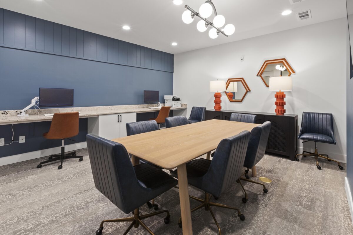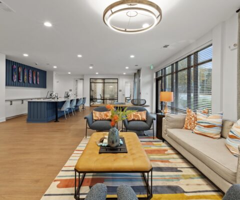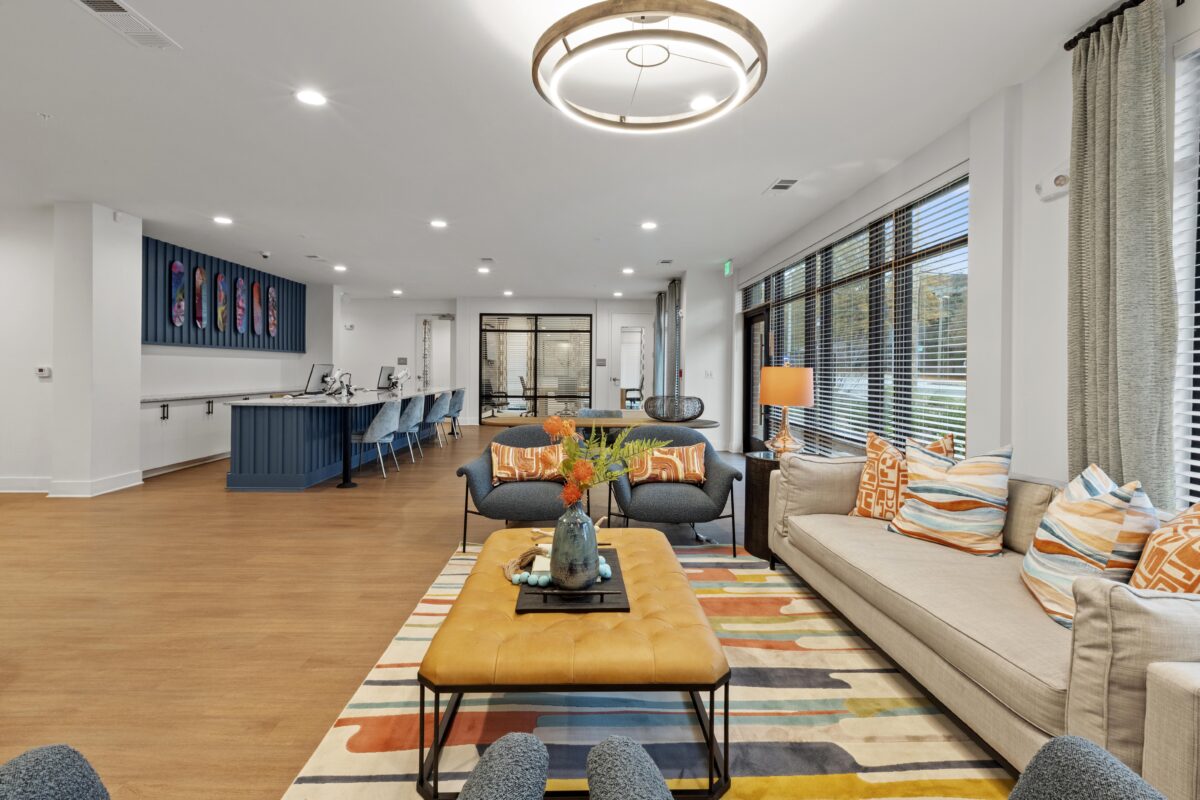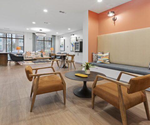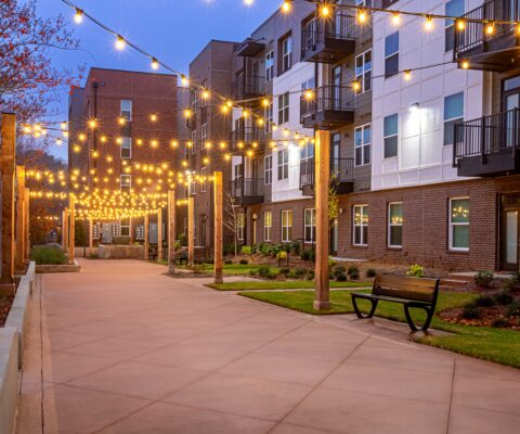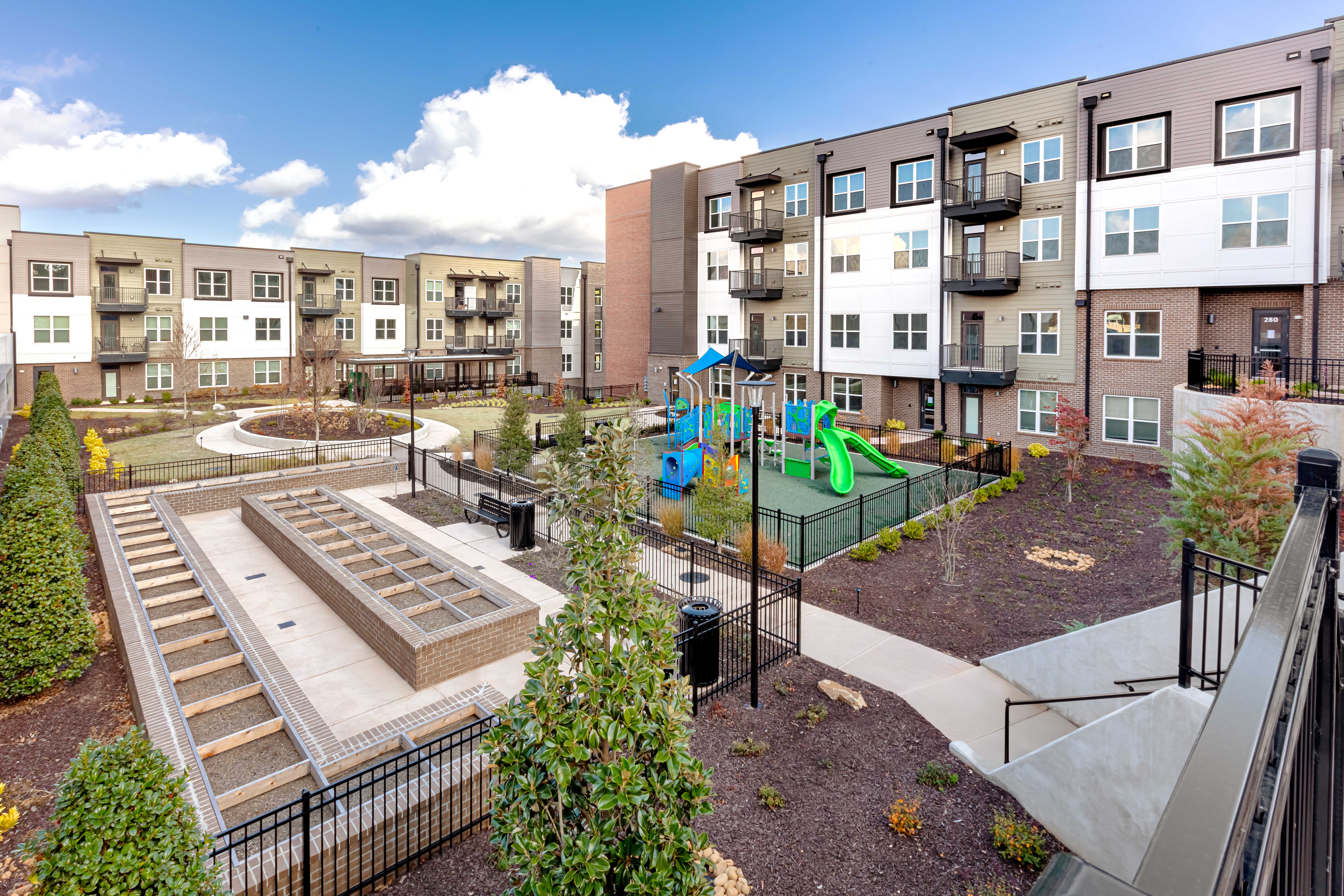 Interior units boast stainless-steel appliances, granite countertops, and in-unit washers and dryers. The community incorporates 4,500 square feet of amenity space, including a clubroom, fitness center, micro-offices, and an activity space. Outdoors, residents can enjoy a pool area with cabanas and a walking park.